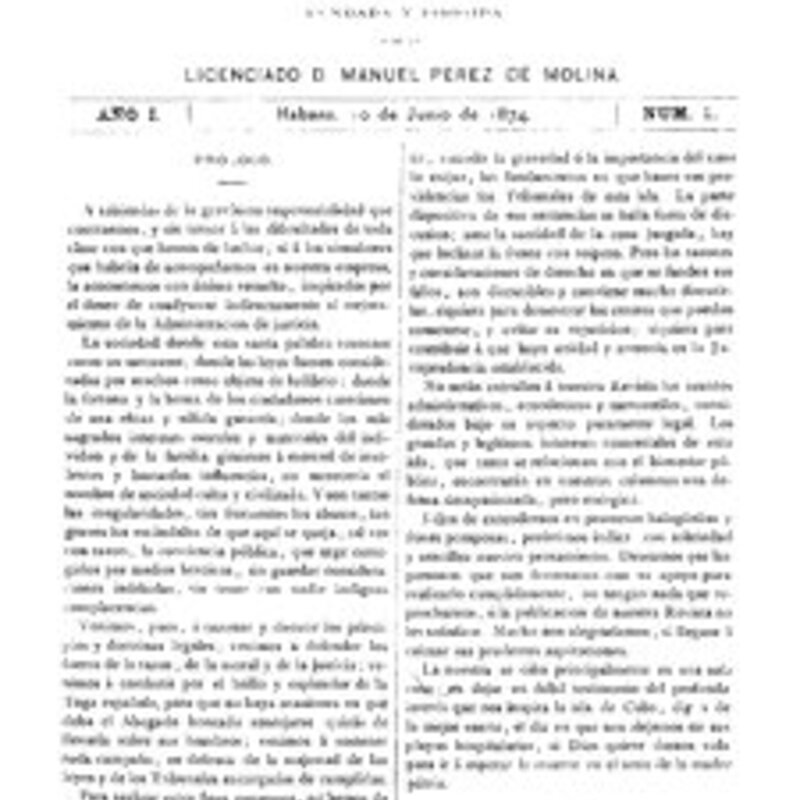 La revista estuvo impulsada, como se refleja en sus colaboradores, por personas cercanas al sistema judicial, sobre todo abogados, como parte de los esfuerzos por poder agruparse ante la no concreción del Colegio de Abogados de La Habana (que llegará años después). La revista según su prólogo insertado en el primer número tenía el “deseo de coadyuvar indirectamente al mejoramiento de la Administración de justicia”. Su contenido era esencialmente sobre tribunales: jurisprudencia, consultas, dictámenes, estadísticas y remates judiciales. Cada número tenía también un par de textos doctrinales casi siempre relacionado de una forma u otra con lo procesal. Su cierre a menos de un año pudo estar relacionado con el escenario cubano mismo, en medio de una guerra y de una serie de explicitas y radicalizadas tensiones sociales. En su último número se anhela “que las circunstancias se nos muestren propicias, para probarles cuan vivos y desinteresados son nuestros deseos de ver próspera y venturosa esta desgraciada Isla”.