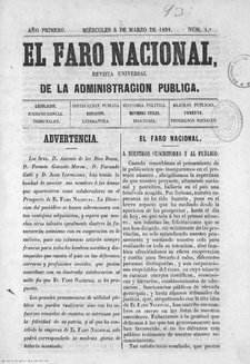 Fue una de las publicaciones más representativas de la época isabelina, en cuanto a contenidos y estilos. Fundada por Francisco Pareja de Alarcón se trató de una larga publicación que varió en muchas ocasiones de subtítulo. Las relaciones políticas y profesionales de Pareja explican el talante conservador y corporativista de la publicación, como se ha escrito. En general, no destaca por la calidad de su contenido de artículos doctrinales, sino por ser un buen ejemplo de revista como medio de circulación de materiales jurídicos, de promoción de intereses corporativos y, al comienzo, con un propósito de fortalecer la Administración en vías de consolidarse. Desde sus inicios habló de las misiones «patrióticas» de la prensa, y de principios como «moralidad, ilustración y trabajo» como guía editorial. Así, se publicación las partes típicas de una revista de este estilo tales como índices cronológicos de los Reales Decretos y Órdenes Generales insertados en la sección oficial, dividida en cada uno de los Ministerios –Ultramar, Fomento, Gracia y Justicia, Guerra, Hacienda–, la sección de crónica de tribunales con decisiones del Tribunal Supremo y del Consejo de Real, éste último centrado en resolver competencias entre administración y autoridad judicial o decidir las autorizaciones para procesar a alcaldes y otros funcionarios, y una sección de consultas. Republicó textos doctrinales de otras revistas. Un balance global de “El Faro Nacional” deja materiales relevantes para cualquier objeto de pesquisa sobre la cultura jurídica isabelina. Aunque tuvo seis épocas, todas mantuvieron un carácter semejante. En su momento participaron corporaciones como el Colegio de Abogados de Madrid, la Real Academia de Jurisprudencia y Legislación y la Sociedad de Socorros Mutuos de Jurisconsultos.