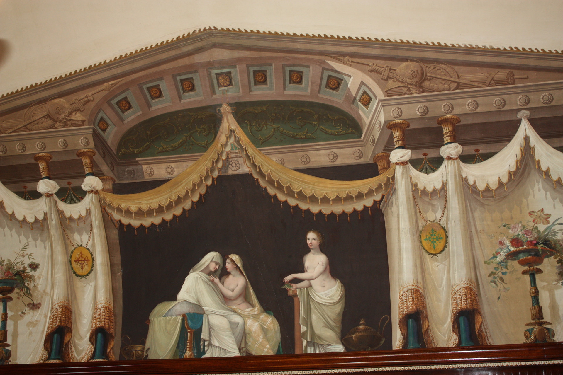 [...] los reyes españoles y la alta nobleza se dejaron seducir por la decoración pompeyana. La mansión de la Moncloa -en la que había intervenido Dugourc- acabó perteneciendo a Carlos IV, pero desde 1784 fue propiedad de la XIII Duquesa de Alba - Doña María del Pilar Teresa Cayetana de Silva Álvarez de Toledo. A esta célebre noble también perteneció el Palacio de Buenavista, el actual Cuartel General del Ejército (Madrid), para el que en 1790 François Grognard, hijo de un fabricante de seda de Lyon, preparó un proyecto de decoración para el Cabinet de Parade, que no se completó pero que conocemos gracias a unos dibujos conservados en el Musée des Arts Décoratifs de París. Hay motivos visibles inspirados en las ruinas de Pompeya y Herculano, pero también en la Domus Aurea y La Logia de Rafael.