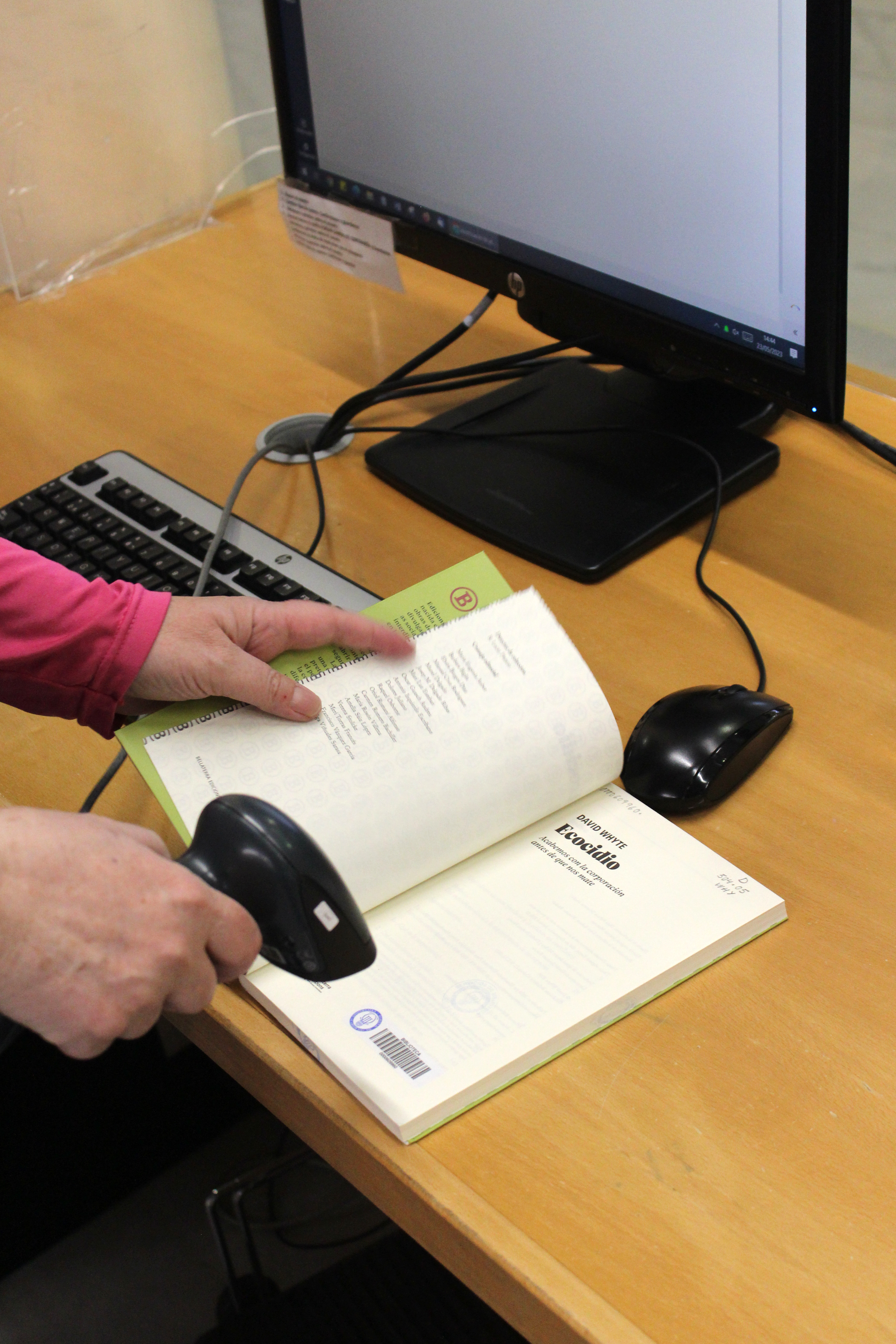 Lector de códigos de barras con libro