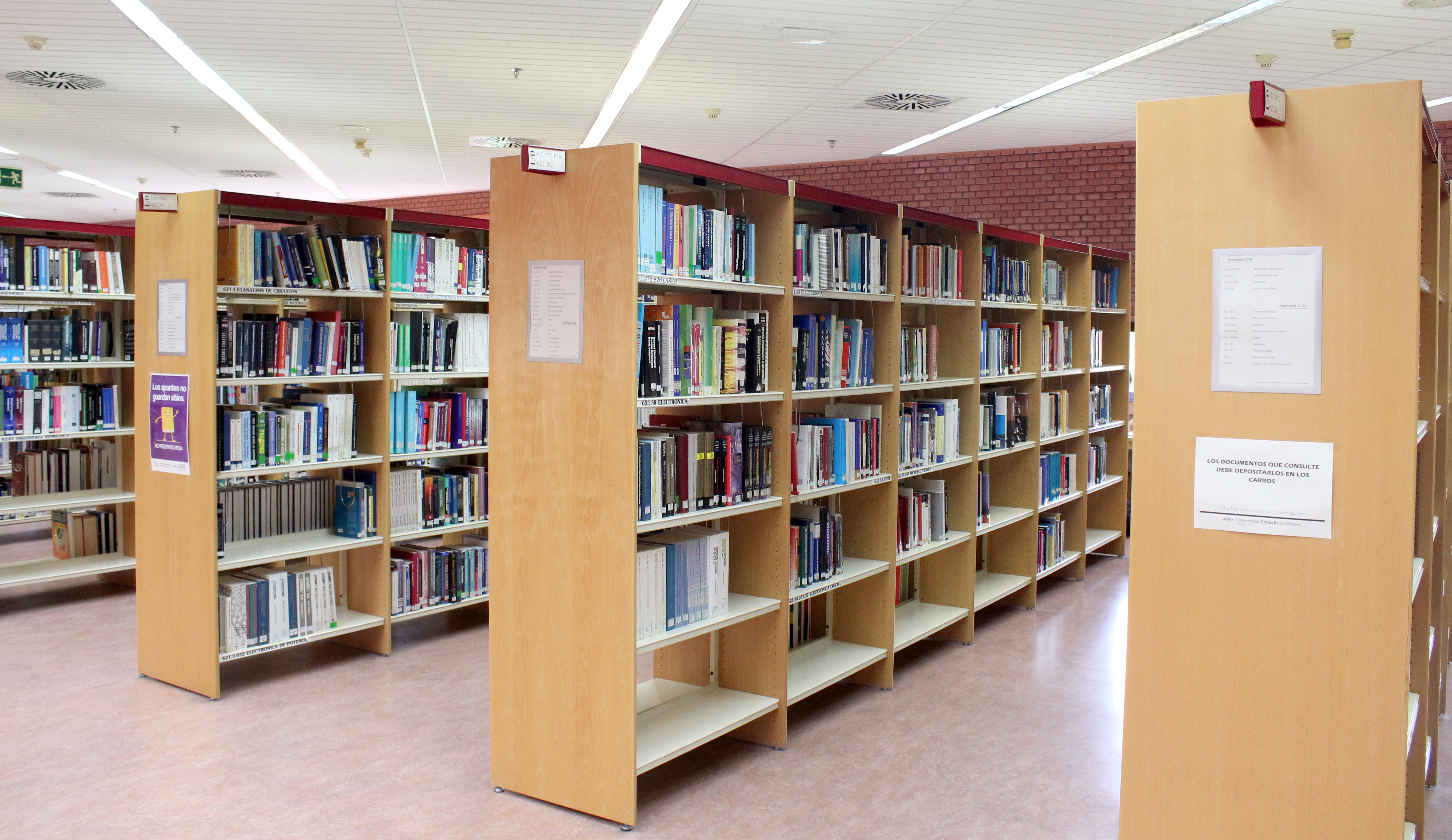 Estanterías con libros Biblioteca Escuela Politécnica Superior. Leganés