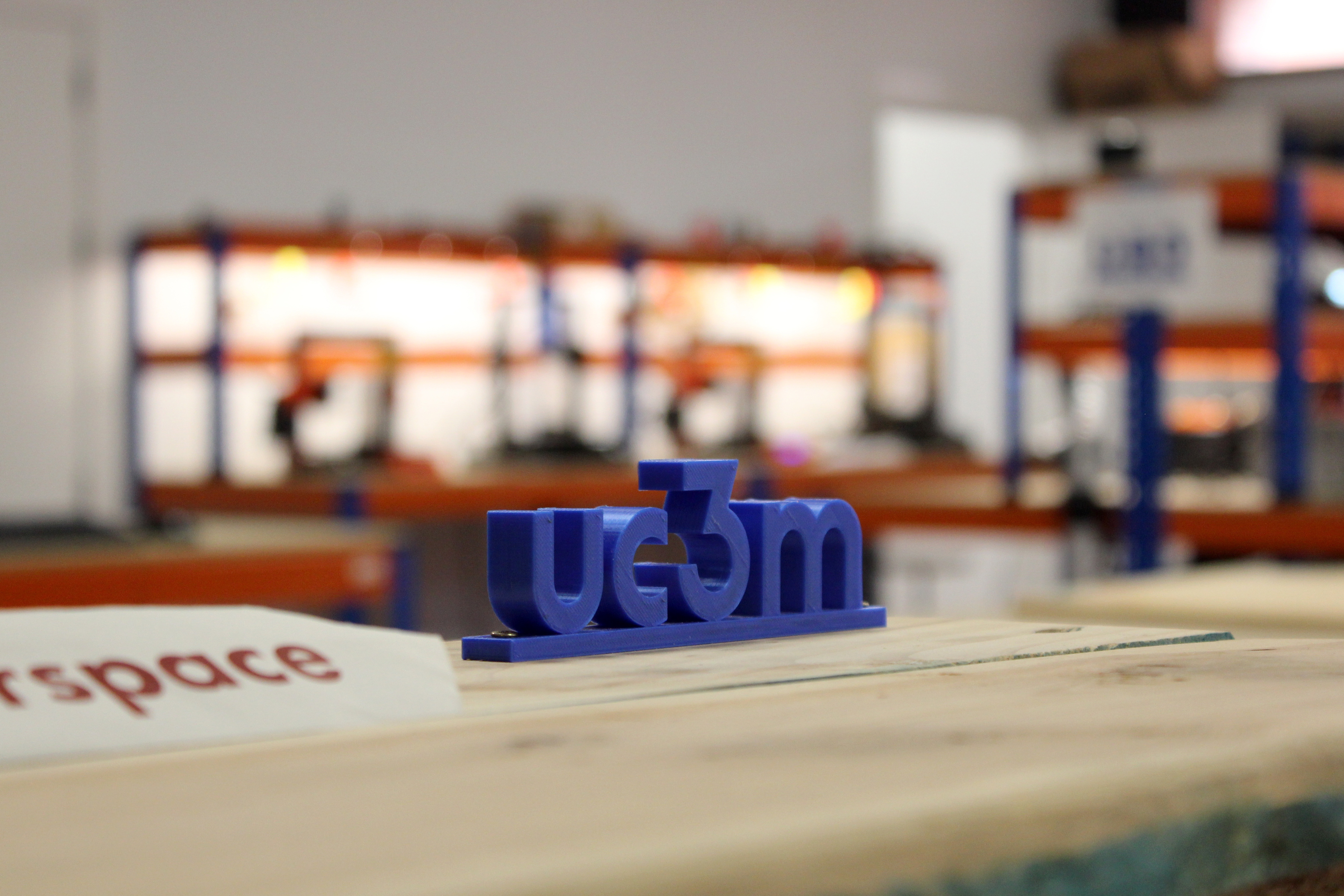logo UC3M hecho en impresa 3D en el mostrador de Maker Space