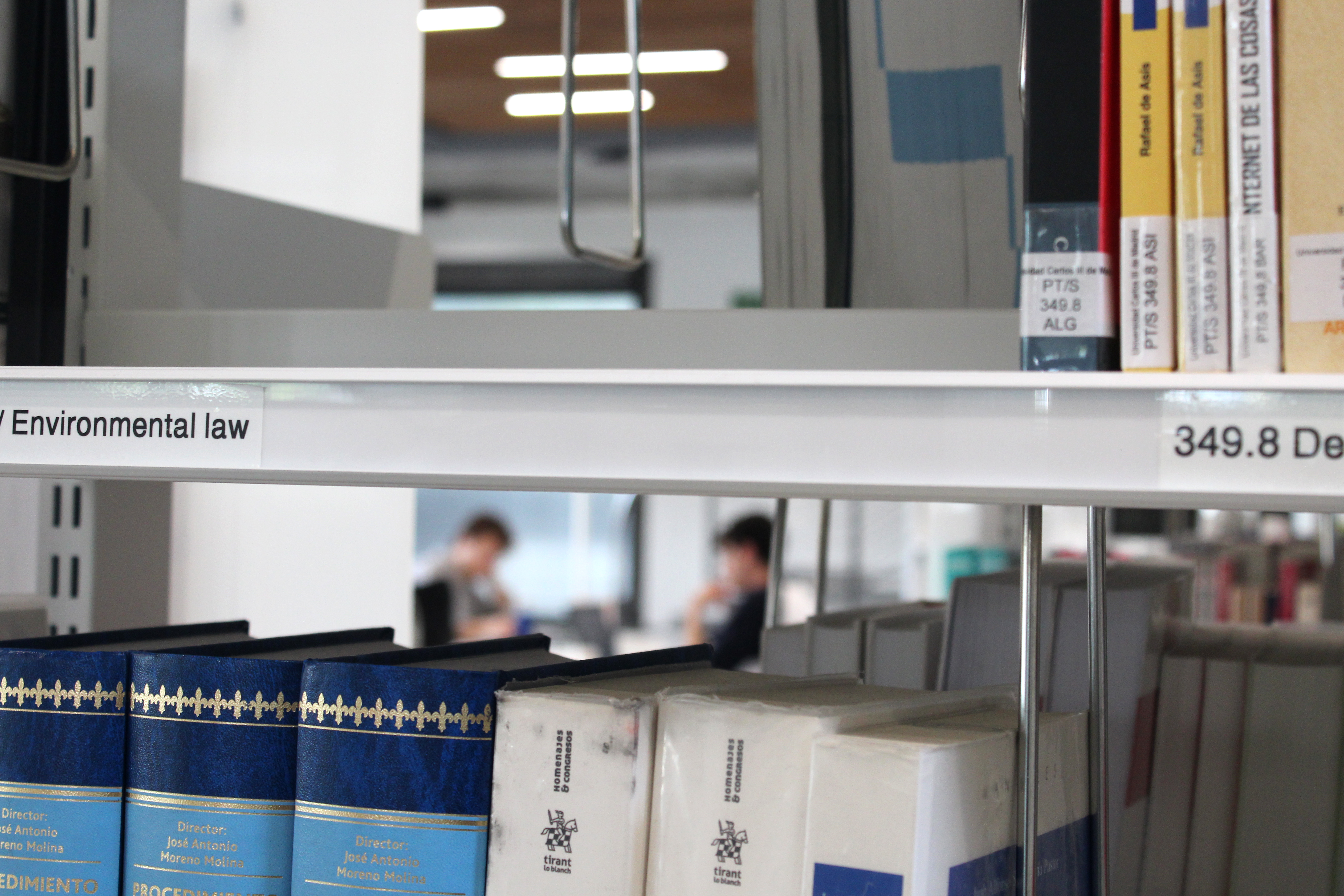 Estanterías en sala lectura Biblioteca Puerta de Toledo. Madrid