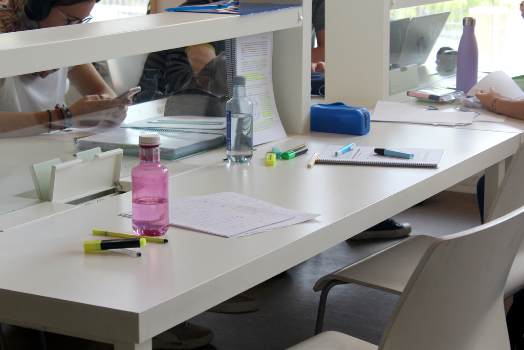 Mesa de estudio con apuntes