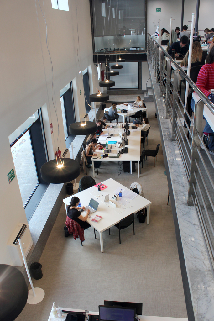 Sala de lectura con alumnos. Biblioteca Escuela Politécnica Superior. Leganés -