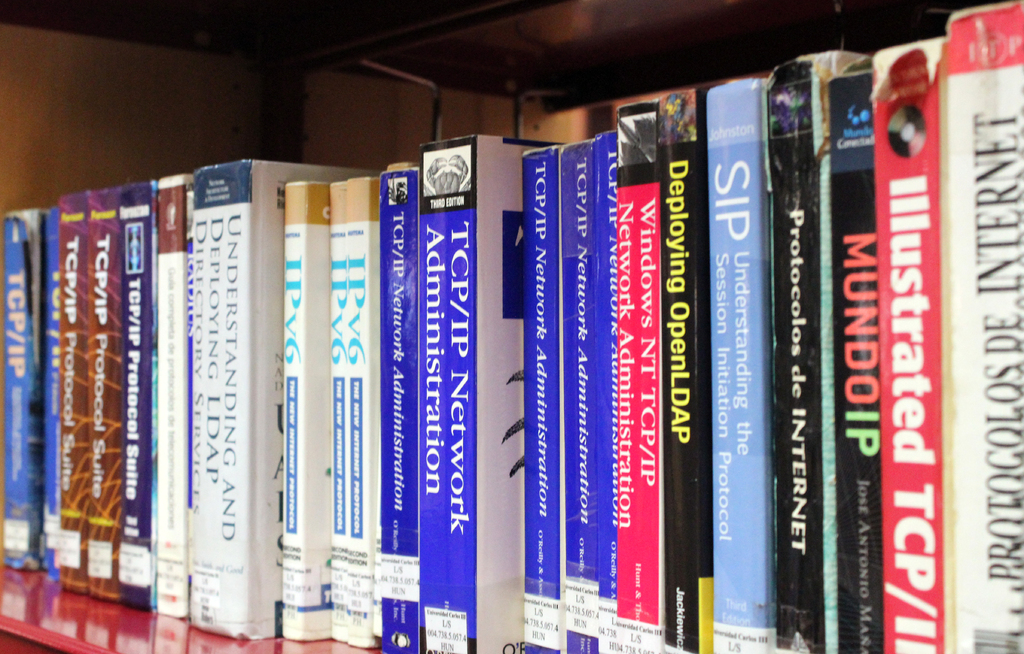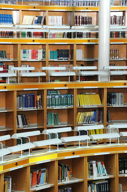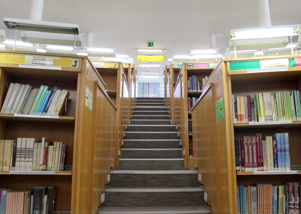 Estanterías con libros Biblioteca Escuela Politécnica Superior. Leganés