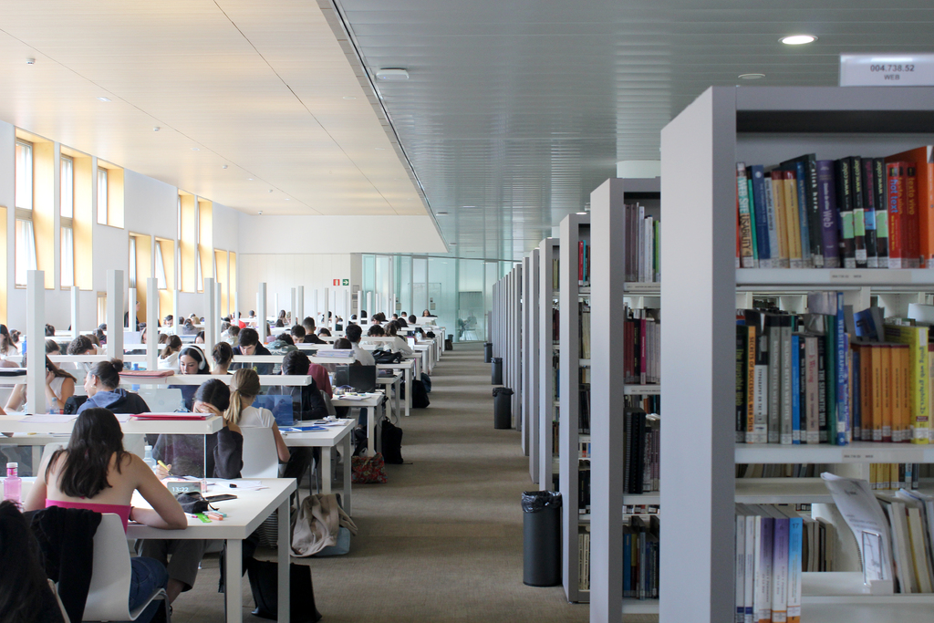 Sala de lectura con alumnos. Biblioteca Escuela Politécnica Superior. Leganés