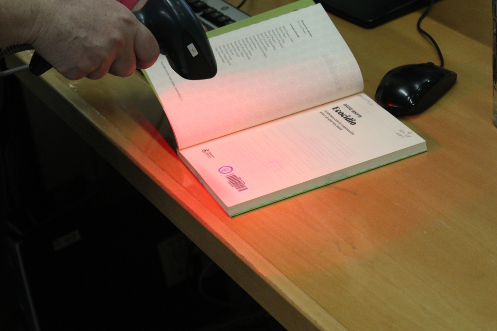 Lector de códigos de barras con libro