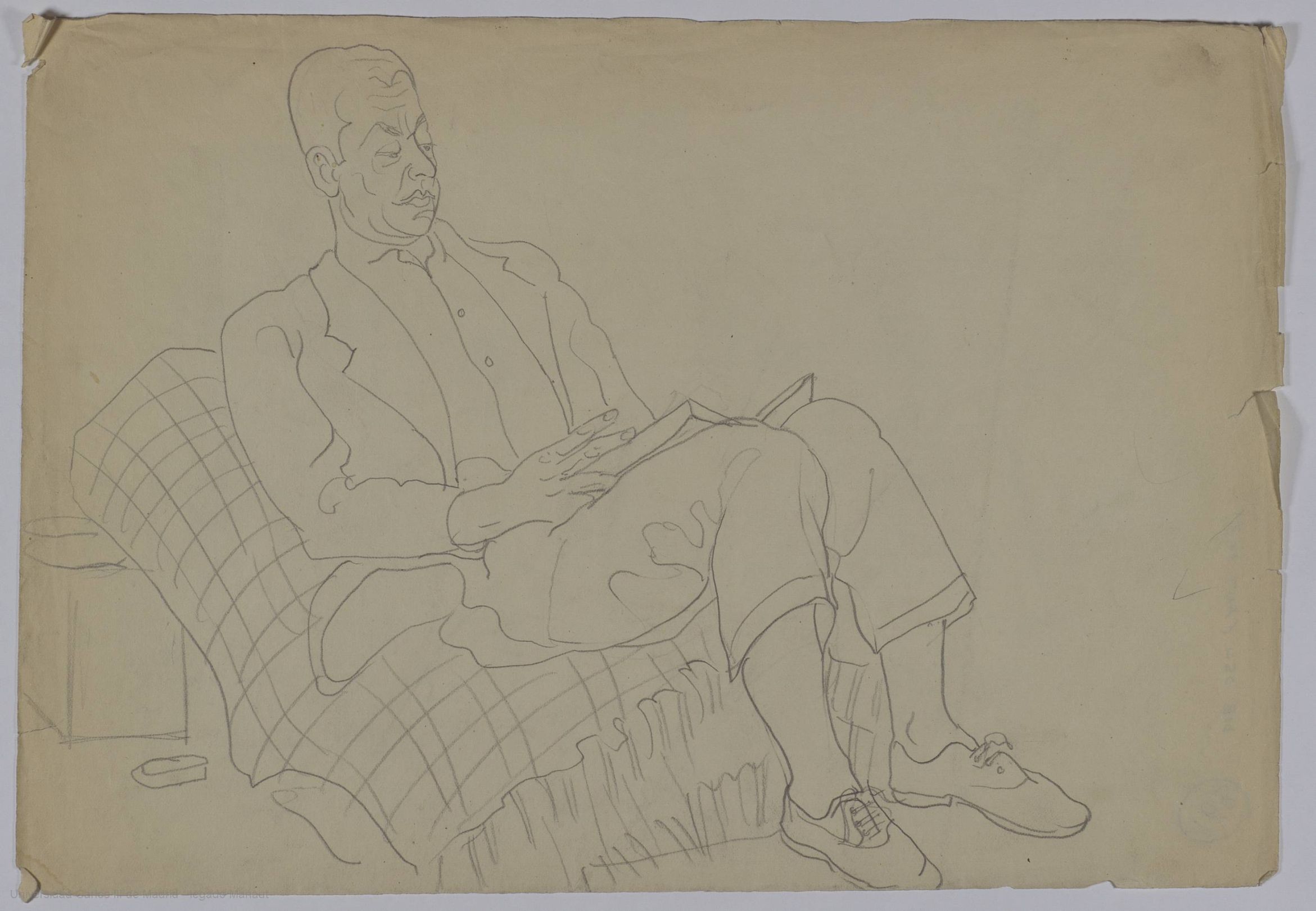 LEYENDO SENTADO, con manta a cuadros - Grafito - 22 x 31 cm