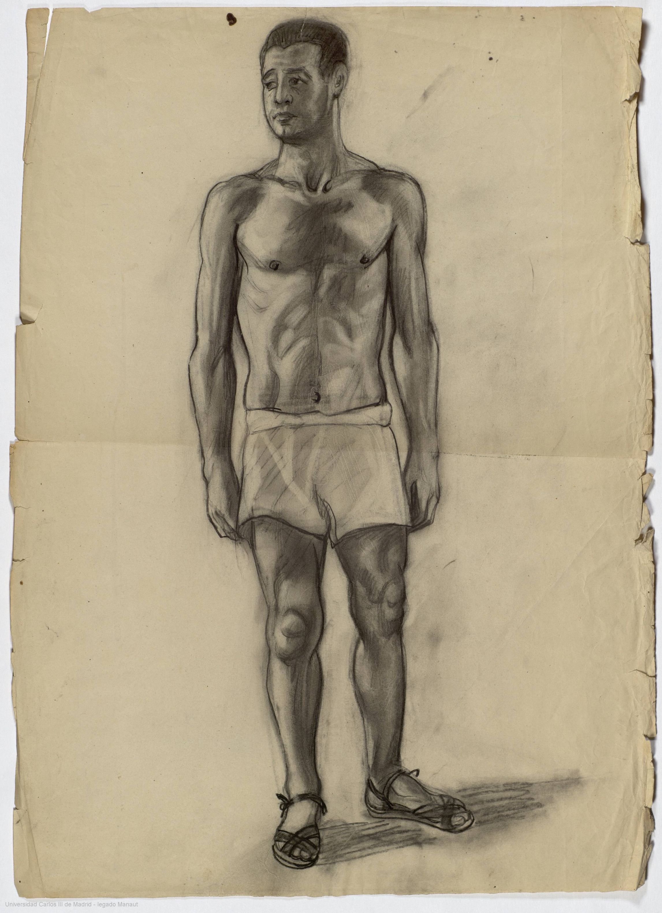 UNO DE PIE, CON EL TORSO DESNUDO - Carboncillo - 31 x 44 cm