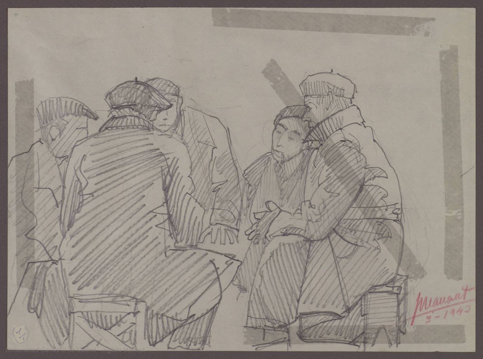 PRESOS -Grafito - 16 x 22 - Firmado en rojo: J. Manaut, 3-1943