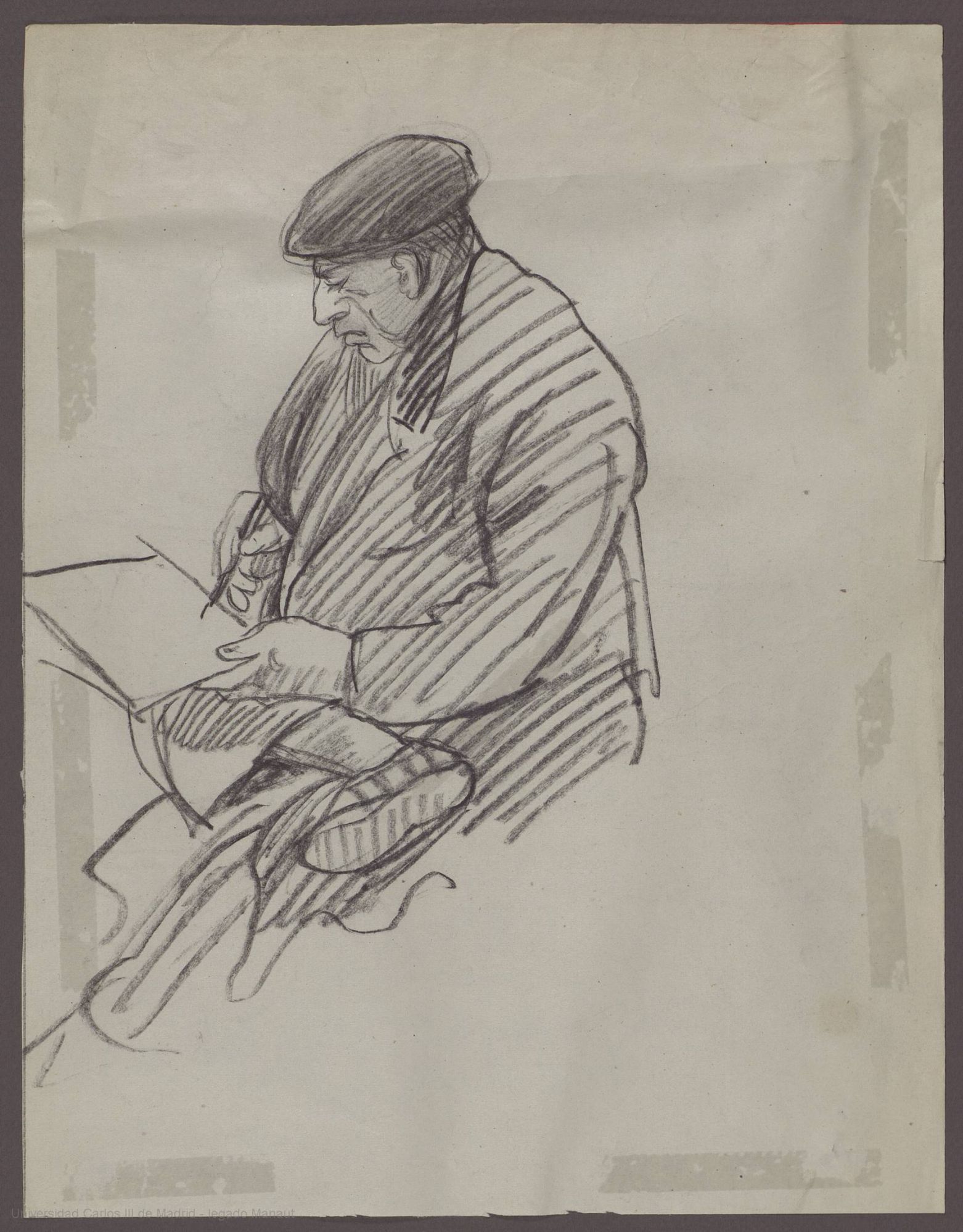 UNO SENTADO, ESCRIBIENDO - Carboncillo - 27 x 21 cm