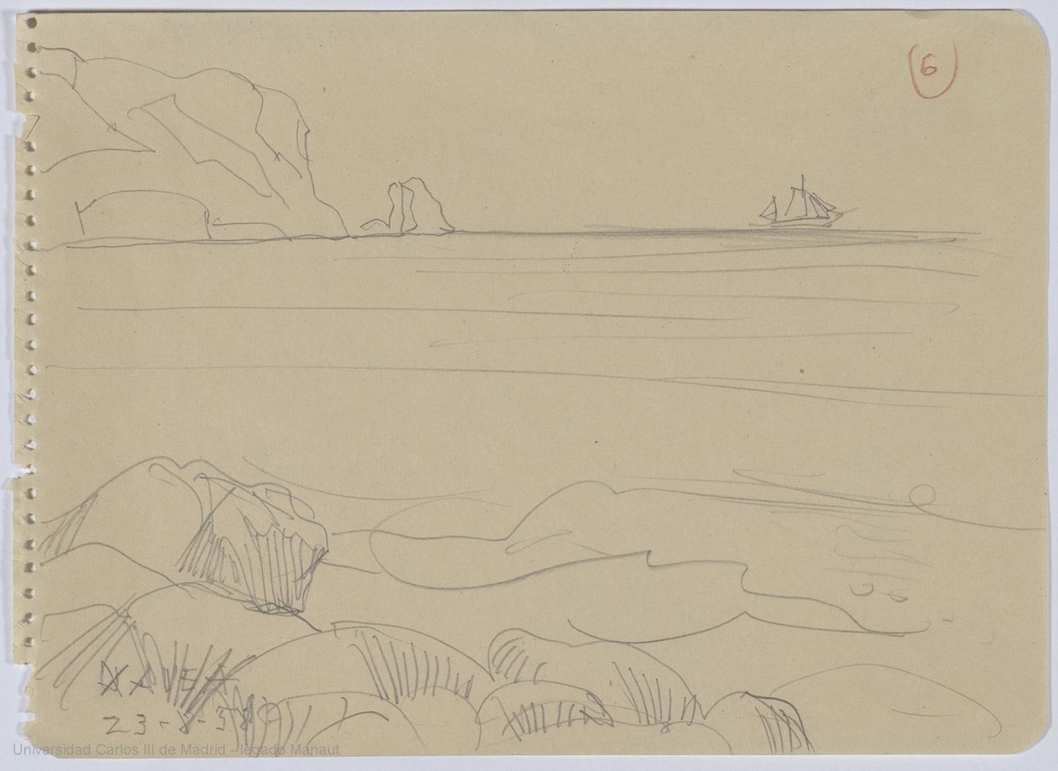 XAVEA 23-8-1958, mar con velero - Grafito - 21 x 15 cm