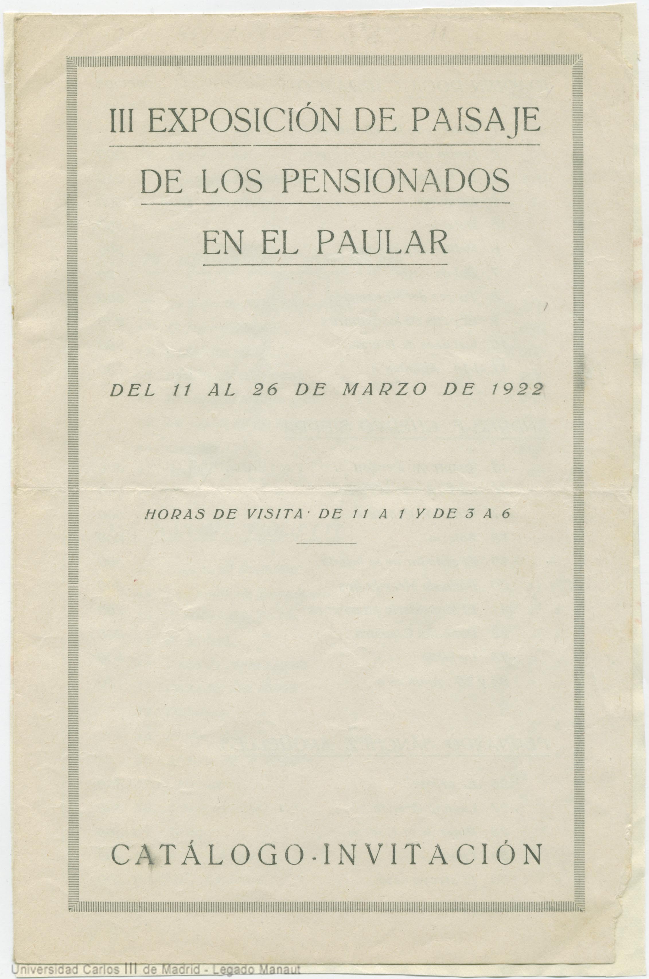 Catálogo - Invitación a la III Exposición de Paisaje de los pensionados de El Paular (11-26 marzo 1922)