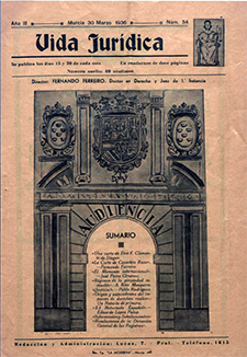 Revista de corte profesional que se presentaba como «única publicación de esta clase en la Región». Tenía información sobre nombramientos, jurisprudencia, breves textos doctrinarios, entre otros. Fue fundada por Fernando Ferreiro, doctor en Derecho y juez de primera instancia. Participaron abogados de la provincia como Miguel Peydro y otros de los colaboradores. Estuvo dirigida a comentar las sentencias de tribunales y audiencias locales, así como informar de nombramientos judiciales y fiscales. Contuvo breves espacios doctrinales e incluyó fotografías y muchos anuncios de interés sobre la vida y negocios locales.