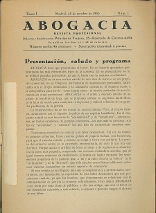 Su primer número puede entenderse casi por completo como una presentación de la revista que aparece como un órgano para la defensa y promoción de la profesión de abogado; al final anuncia las secciones que tendría en adelante y que serían: "Jurisprudencia", en la que se recogerá la doctrina más interesante del Tribunal Supremo; "El sentimiento popular de la Justicia",...