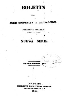 La nueva serie (1840) es continuación tanto de la primera serie del Boletin de Jurisprudencia y Lejislacion (1836) como de la revista Crónica Jurídica (1839).