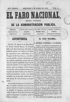 Fue una de las publicaciones más representativas de la época isabelina, en cuanto a contenidos y estilos. Fundada por Francisco Pareja de Alarcón se trató de una larga publicación que varió en muchas ocasiones de subtítulo. Las relaciones políticas y profesionales de Pareja explican el talante conservador y corporativista de la publicación, como se ha escrito. En general, no destaca por la calidad de su contenido de artículos doctrinales, sino por ser un buen ejemplo de revista como medio de circulación de materiales jurídicos, de promoción de intereses corporativos y, al comienzo, con un propósito de fortalecer la Administración en vías de consolidarse. Desde sus inicios habló de las misiones «patrióticas» de la prensa, y de principios como «moralidad, ilustración y trabajo» como guía editorial. Así, se publicación las partes típicas de una revista de este estilo tales como índices cronológicos de los Reales Decretos y Órdenes Generales insertados en la sección oficial, dividida en cada uno de los Ministerios –Ultramar, Fomento, Gracia y Justicia, Guerra, Hacienda–, la sección de crónica de tribunales con decisiones del Tribunal Supremo y del Consejo de Real, éste último centrado en resolver competencias entre administración y autoridad judicial o decidir las autorizaciones para procesar a alcaldes y otros funcionarios, y una sección de consultas. Republicó textos doctrinales de otras revistas. Un balance global de “El Faro Nacional” deja materiales relevantes para cualquier objeto de pesquisa sobre la cultura jurídica isabelina. Aunque tuvo seis épocas, todas mantuvieron un carácter semejante. En su momento participaron corporaciones como el Colegio de Abogados de Madrid, la Real Academia de Jurisprudencia y Legislación y la Sociedad de Socorros Mutuos de Jurisconsultos.