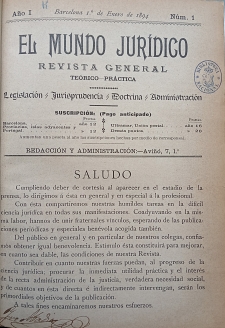 Esta revista se publicó en Barcelona durante un breve periodo. Intentó ser tanto teórica como práctica. Según su saludo inicial («cumpliendo deber de cortesía al aparecer en el estadio de la prensa») su programa fue contribuir: «al progreso de la ciencia jurídica; procurar la inmediata utilidad práctica y el interés de la recta administración de la justicia, verdadera necesidad social, y de cuantos en esta directa é indirectamente intervengan, serán los primordiales objetivos de la publicación». Preveía suscripciones a Portugal y Ultramar también. Hubo contenidos diversos desde incompatibilidades judiciales, el juicio por jurados, o la teoría de la moderna mecánica, sociología criminal y otras disciplinas jurídicas. Secciones legislativas y de jurisprudencia con comentarios de sentencias y de actos del Registro de la Propiedad, y sección de bibliografía jurídica de autores españoles y extranjeros, y una sección de legislación extranjera explicando los contratos de arrendamiento en México o las letras de cambio en Francia.