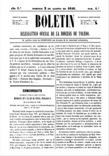 Vicente Cárcel p.78, lo consideró el primero de los boletines oficiales de las diócesis españolas, al atribuirle el año de fundación de 1844, basándose en que el boletín en 1966 decía ser el año CXXII. Pero el trabajo de localización y digitalización realizado por la Hemeroteca Municipal de Toledo ha descubierto que el primer número fue publicado en agosto de 1846, pese a lo cual Mariano García ha seguido sosteniendo que es el primer boletín oficial diocesano de España, consideración que corresponde a Granada (de 1845).