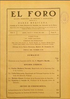 Revista de los abogados de México, con informaciones interesantes a la profesión, artículos de vario contenido, reseña de jurisprudencia e índice de novedades legislativas.